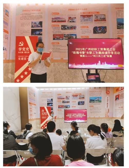 主題二“弘揚工匠精神”:廣州輕工集團十大最美工匠之一、利工民陳慧技師創新工作室的陳慧作為“玫瑰書香”女職工主題閱讀活動的領讀人,為大家領讀了《把一切獻給黨》選段,同時分享了自己對利工民產品20年的改良創新歷程。利工民黨委副書記、工會主席陳惠瓊揮毫書寫“巾幗共奮進,永遠跟黨走”。