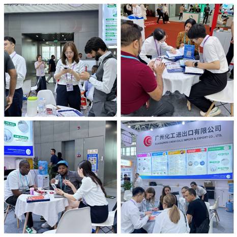 本屆廣交會,化工產(chǎn)品展位依然保持主通道地理優(yōu)勢,除常態(tài)化綠色布展以外,紡織公司與化工公司首次以統(tǒng)一風(fēng)格進(jìn)行連片布展,以全新的聯(lián)合參展方式向全球客商展現(xiàn)創(chuàng)新專業(yè)的企業(yè)形象。把握綠色低碳產(chǎn)品市場的廣闊機(jī)遇,化工公司堅持采用低碳生產(chǎn)工藝的新產(chǎn)品、新成果,展出以高效清潔、環(huán)保安全為亮點的日化洗滌、水處理、陶瓷化學(xué)系列產(chǎn)品;展會現(xiàn)場設(shè)置互動體驗區(qū),運用數(shù)字移動屏動態(tài)展示產(chǎn)品使用場景,開展首日即吸引了大量客商駐足,與參展團(tuán)隊進(jìn)行深度接洽,為開拓新渠道、發(fā)展新市場奠定了良好的開端。