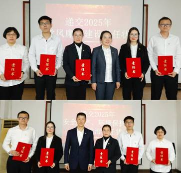 各部門向公司主要領導遞交2025年度黨風廉政建設、安全生產、環境保護、維穩綜治等目標管理責任書。