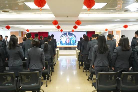 上午9點(diǎn),公司在廣德大廈15樓禮堂舉行了升國(guó)旗儀式,全體員工參與。簡(jiǎn)瑋儀代表領(lǐng)導(dǎo)班子在儀式上致辭。她指出,2025年是“十四五”收官之年,公司在2025年開(kāi)局就實(shí)現(xiàn)了開(kāi)門紅,希望大家在新的一年繼續(xù)堅(jiān)定信心,開(kāi)拓進(jìn)取,全力沖刺“十四五”目標(biāo),為“十五五”開(kāi)局起步奠定堅(jiān)實(shí)基礎(chǔ),為強(qiáng)國(guó)建設(shè)、中華民族偉大復(fù)興作出紡織人新的更大貢獻(xiàn)。