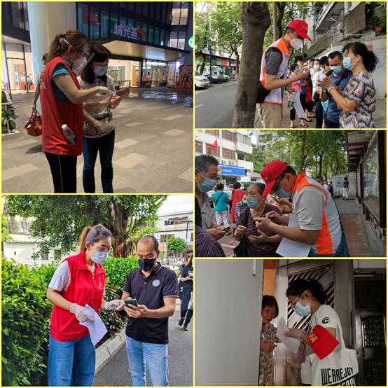 6月10日,荔灣區開展新一輪的全員核酸檢測工作,為緩解社區沉重的工作壓力,紡織公司團委書記梁晨與塑料公司團員王卓璋、羅承熙、梁慧娟分別前往荔灣區龍津街道城光薈、西村街道西灣東鄰里廣場協助做好流程指引、隊伍秩序維持、協助掃碼等工作。