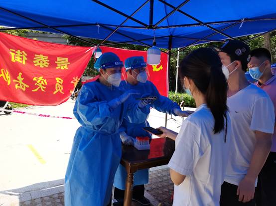 張湘軍是紡織公司紀委辦主任。她的愛人時愛明是廣州市教育局機關機紀委二級調研員、工會主席。“我和愛人都是老黨員了,我們更應該在這場戰‘疫’中勇擔使命。”當白云區出現本土確診病例需要立馬開展全員核酸檢測工作時,她積極響應號召,同自己的愛人來到所居住的景泰街大金鐘社區報名參加志愿服務,積極配合社區做好人員分類、檢測指引、政策解釋、秩序維護、上門摸查等工作。自從4月8日以來,他們已經連續在一線奮戰6天。